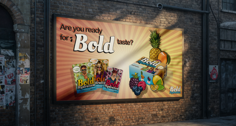Für die Getränkemarke BOLD habe ich das Packaging Design entworfen. Auf Grundlage eines Moodboards entstand ein modernes Erscheinungsbild mit eigenen Illustrationen für die verschiedenen Flavors. Die Designs wurden mit Adobe Creative Cloud umgesetzt und als Mockups präsentiert. Die Charakterillustrationen stammen von einem Illustrator, die Fruchtillustrationen hingegen von mir. Es handelt sich um Konzept-Entwürfe, die nicht produziert wurden.